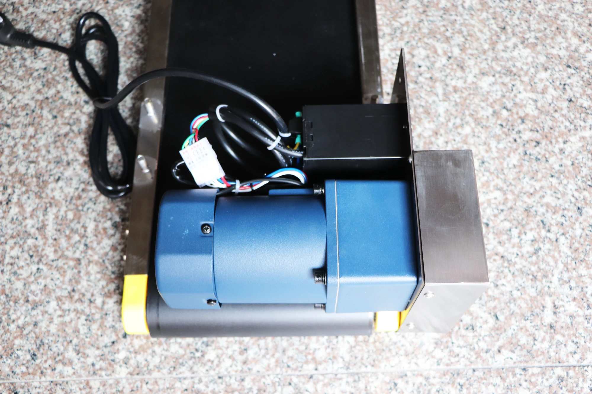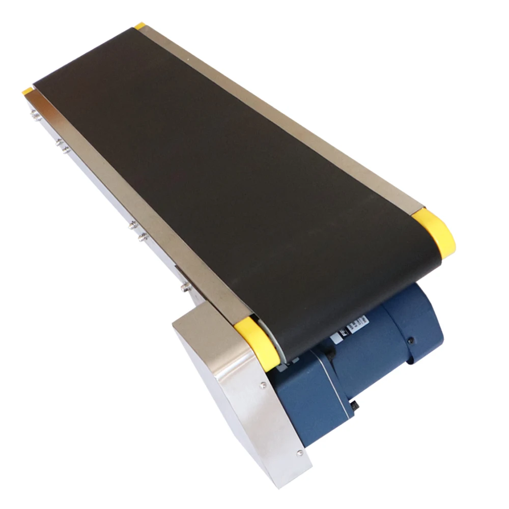 This conveyor is mainly used to transfer the bottles/metal/plastic bag/paper box/sticker, etc, for the printing work of inkjet printer. It is widely used in Food, Drinking, Medicine, Electric, Auto, etc.