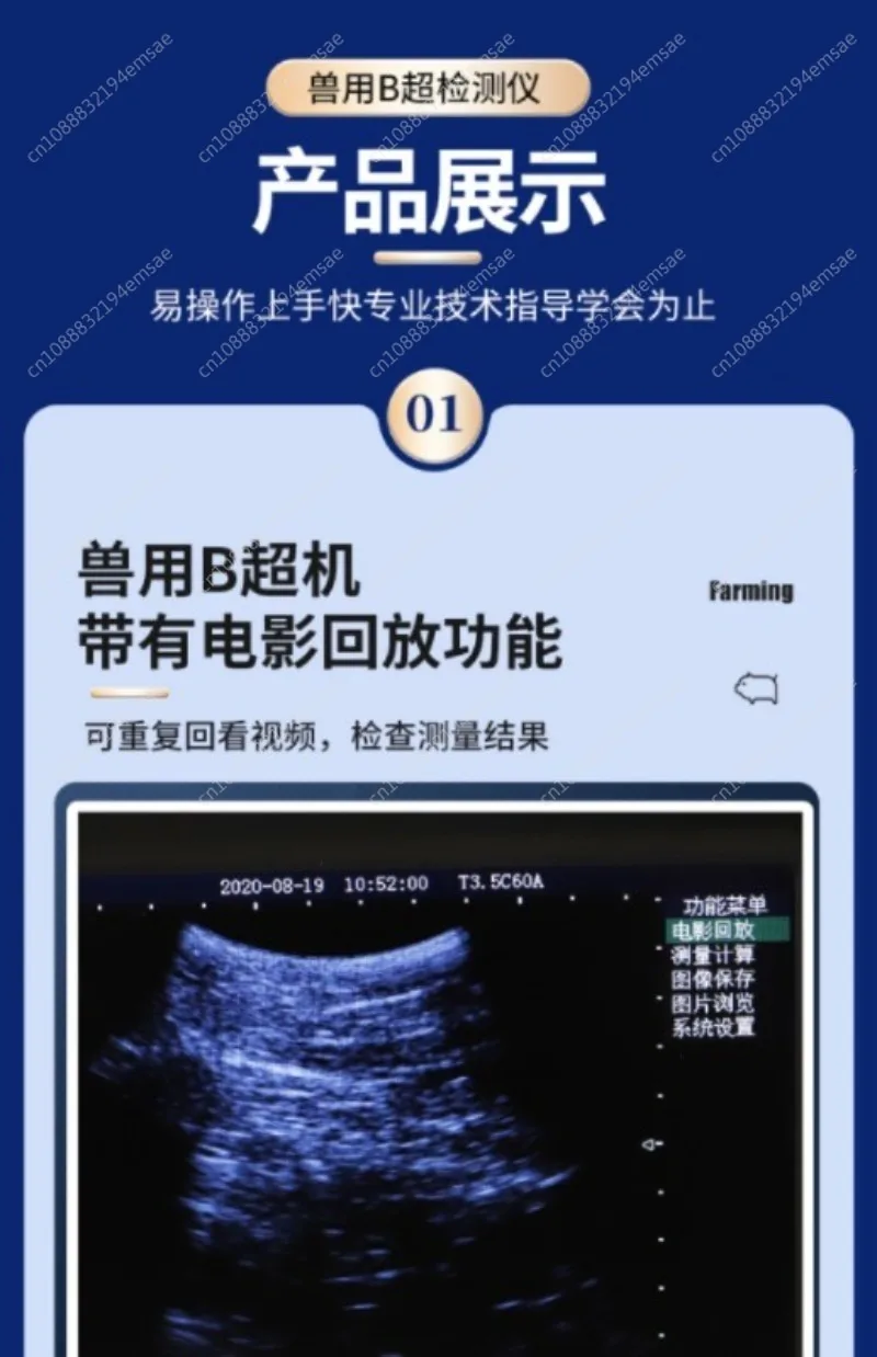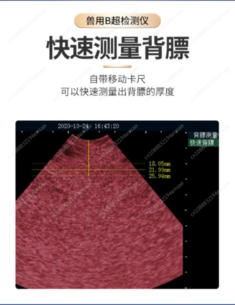 The sow under inspection was free to stand or lie on its side in the restricted feeding pen, and was probed on the abdominal wall of its inner thighs and outer nipple. When probing, just apply the probe with a coupling agent and then stick it on the lower abdominal wall. There is no damage or stimulation during probing, and it has the characteristics of short probing time and high accuracy without stress. The image is intuitive, and early pregnancy can be confirmed when seeing the dark area of the pregnancy sac or the fetal bone image.