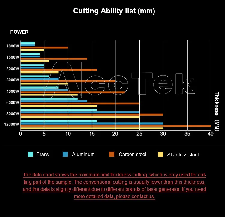 1. Fiber laser cutter power:1000W, 1500W, 2000W, 3000W, 4000W, 6000w, 10000w, 12000w, etc.