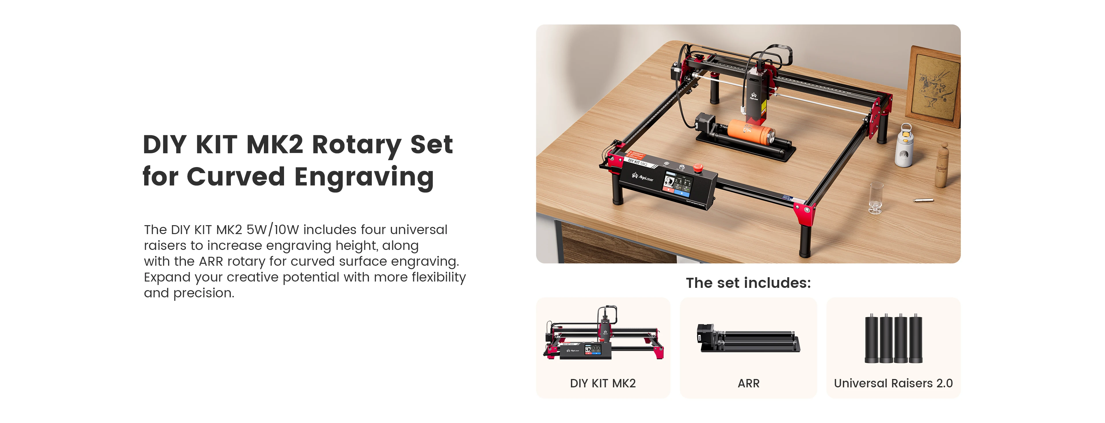 (Smart Hub; Manual/Electric Z-Axis; Honeycomb Board/Engraving Platform/Heightening Feet/ARR/ARC/Dustproof Box/Camera/Purifier)