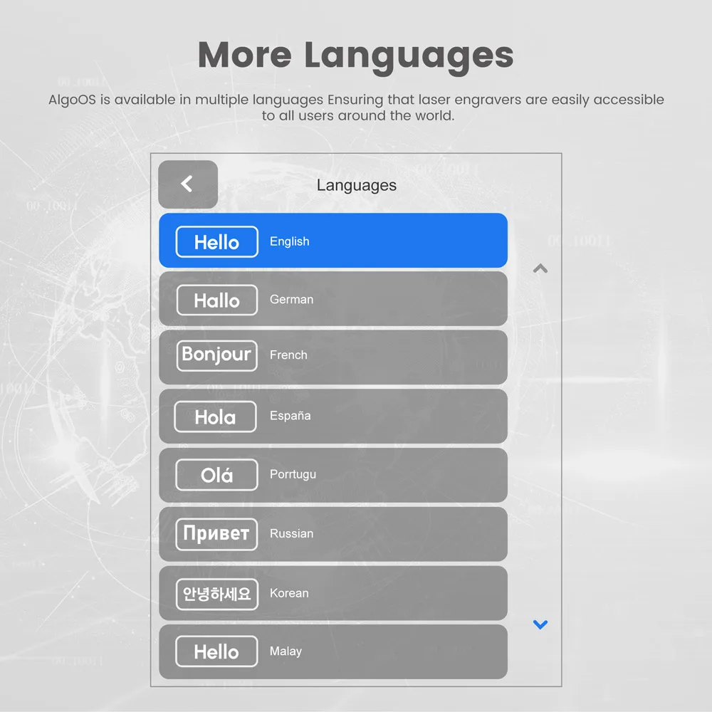 -The AlgoOS has built-in Algo Graphics Engine, A 5M JPG image could be processed within 30 seconds, from image to engraving within 1 minute, allowing ordinary users to be free from learning new software.