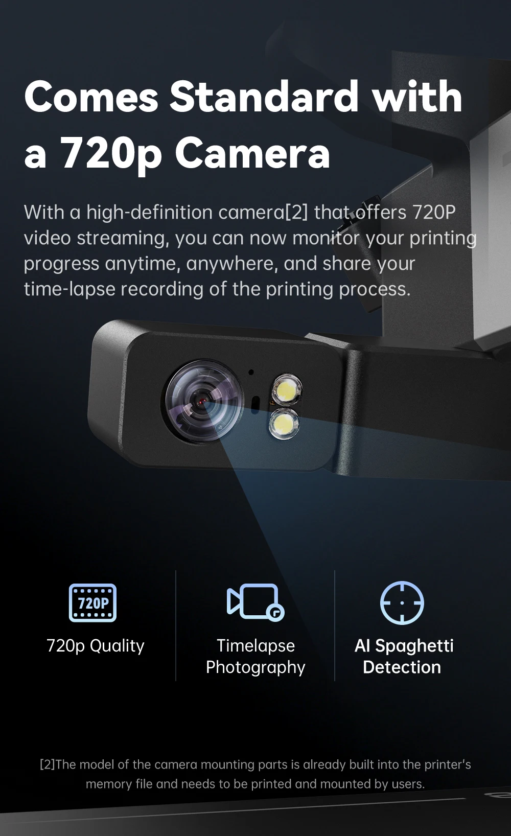 With a high-definition camera[2] thatoffers 720P video streaming, you can now monitor your printing progress anytime, anywhere, and share your time-lapse recording of the printing process.
