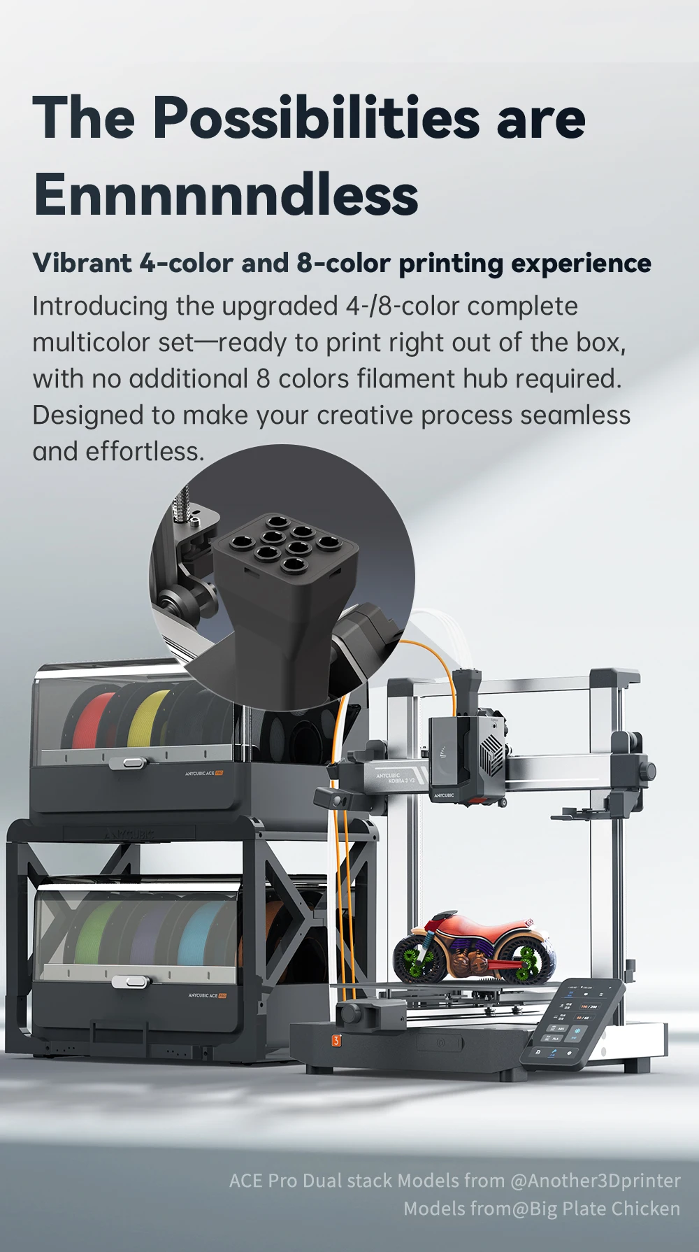 Introducing the upgraded 4-/8-color complete multicolor set-ready to print right out of the box with no additional 8 colors filament hub required.Designed to make your creative process seamless and effortless.