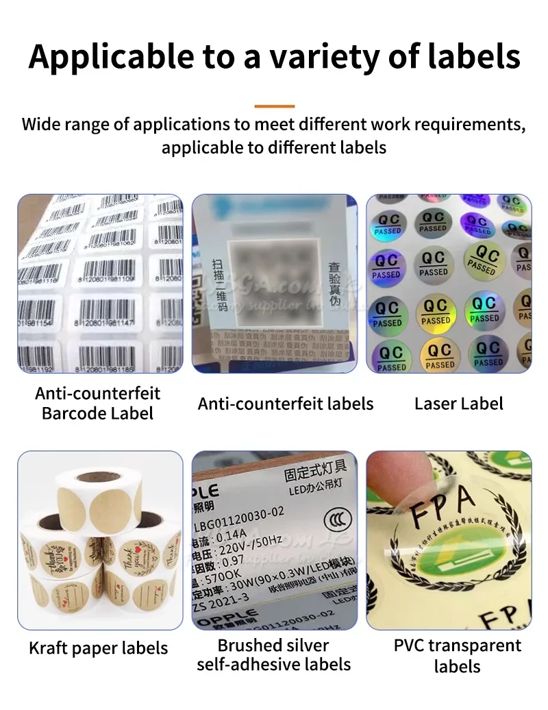 Applicable labels: self-adhesive labels, self-adhesive film,electronic monitoring code, bar code, etc.