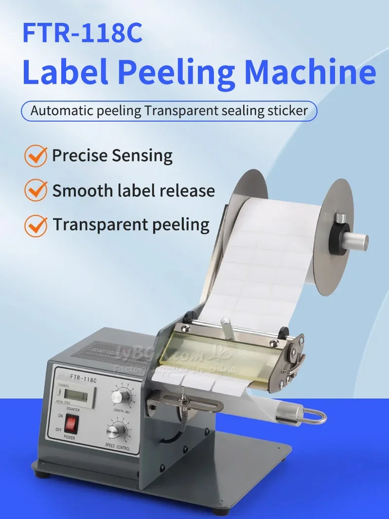 Automatic Label Peeling Machine TR-118C Label Stripping Dispenser Sticker Separating Tool Photoelectric or Fiber Optic Induction