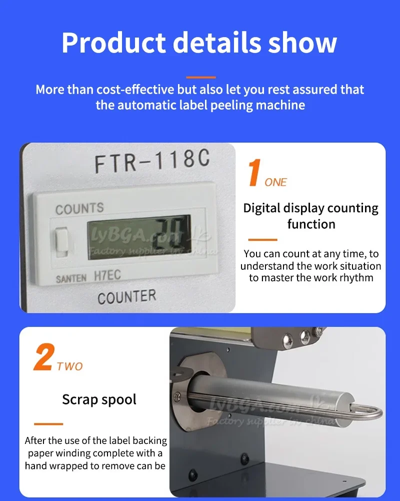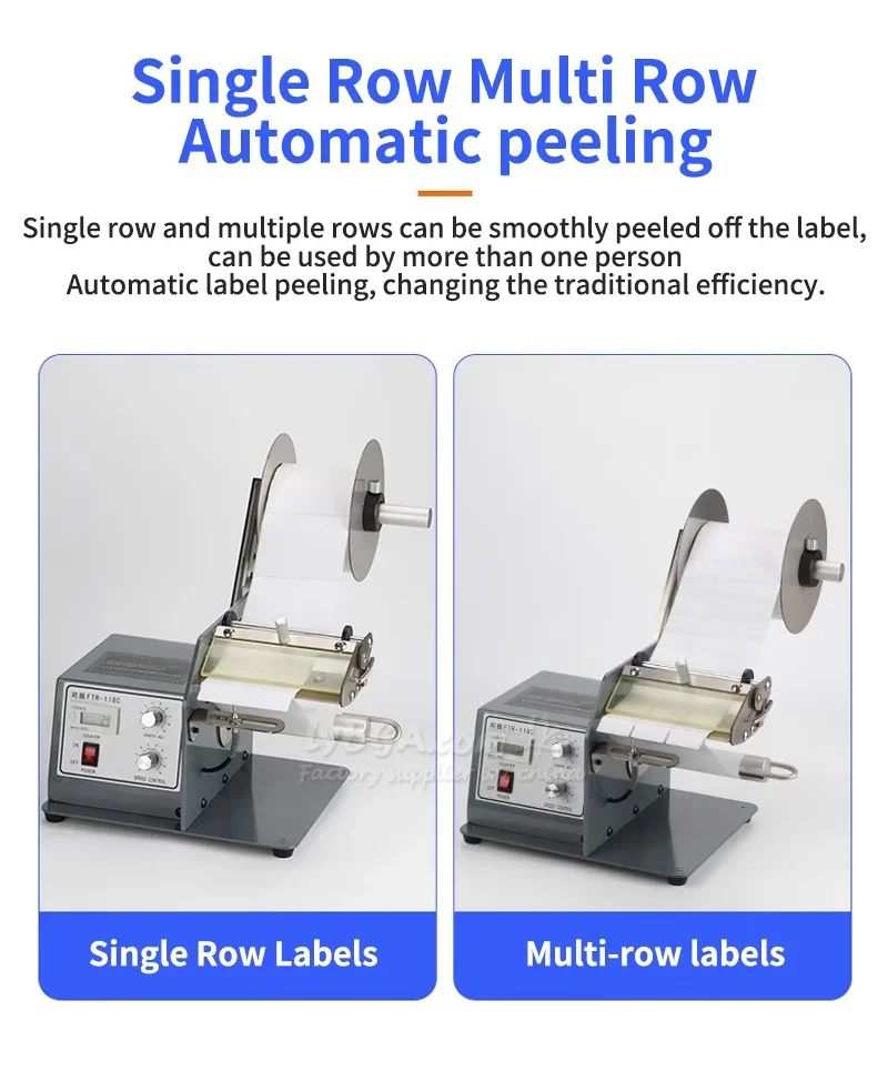 Used for the automatic peeling of labels,the peeled label is taken, automatically peeled off the next label after it is removed, improving the efficiency of workers in removing labels. Multiple rows of labels can be peeled off at one time.