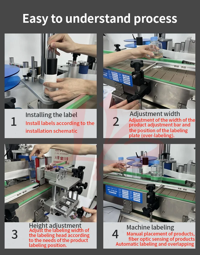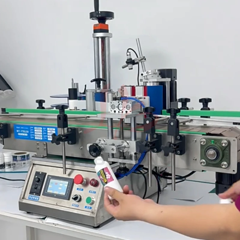 Automatic Self-adhesive Round Bottle Labeling Machine with conveyor belt Printing Labels On Bottles Adjustable Speed 360W
