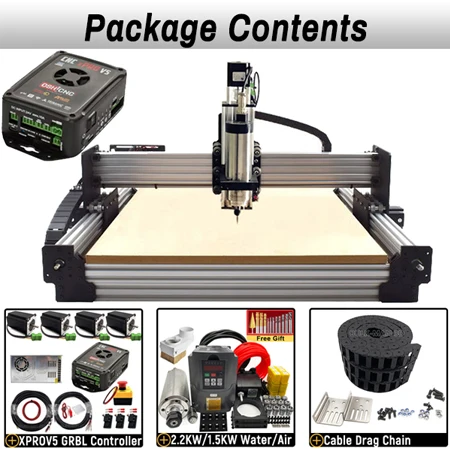 1.5KW 110V/220V Air-Cooled Spindle Kit ● XPRO V5 Controller Kit ● XYZ Touch Probe ● Free Drill Bits (10pcs/set)
