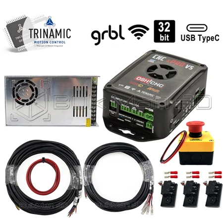 Features: ● 32bit processor ● High powered Trinamic 6A Stepper Drivers ● Supports VFD control ● Easy Plug and Play ● SD Card which allows for offline use ● Both Wi-Fi connection & USB connection (user choice) ● This option is the best choice for both a novice starting out, and with people with experience and technical knowledge. |