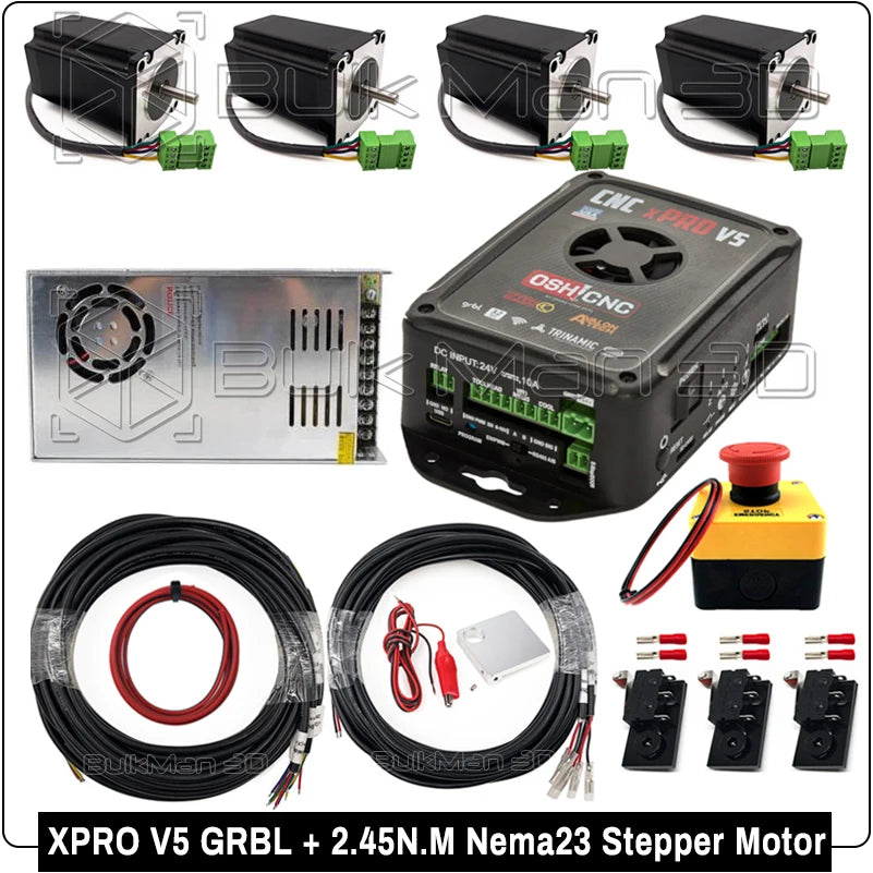 The xPRO V5(We Recommend) is the most advanced GRBL CNC Controller in the world. Developed by Spark Concepts in USA who have been making GRBL CNC products for many years. It runs off a 32bit processor with over 4x the processing power of most other GRBL controllers. The xPRO V5 is pre-assembled and pre-flashed with the latest GRBL version. We recommend the xPRO V5 as the best controller option available. The stepper drivers are easily suitable for our High Torque Stepper Motors and can even power stronger motors such as Nema34.