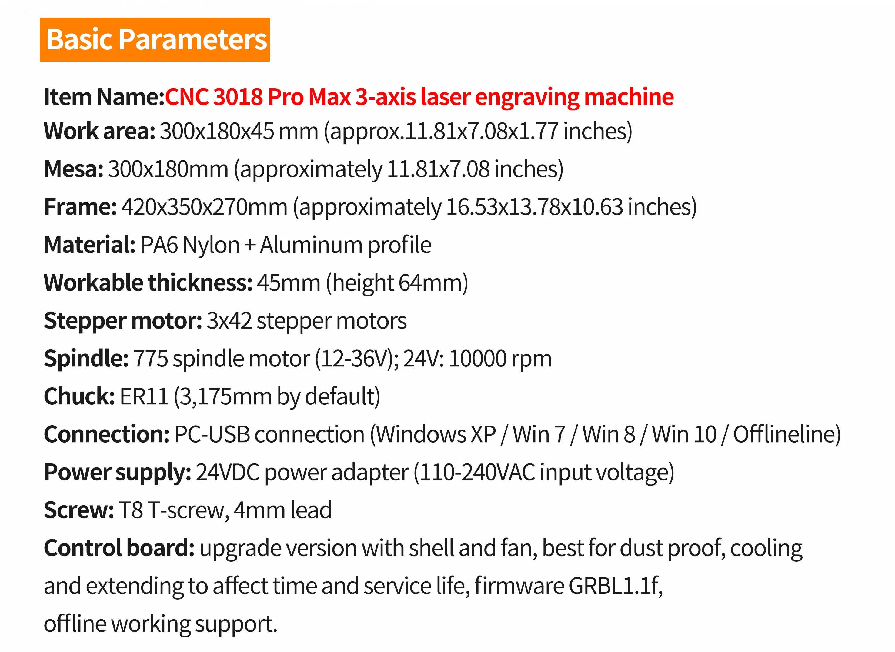 Spindle : 775 spindle motor (12-36V)24V: 10000r/min