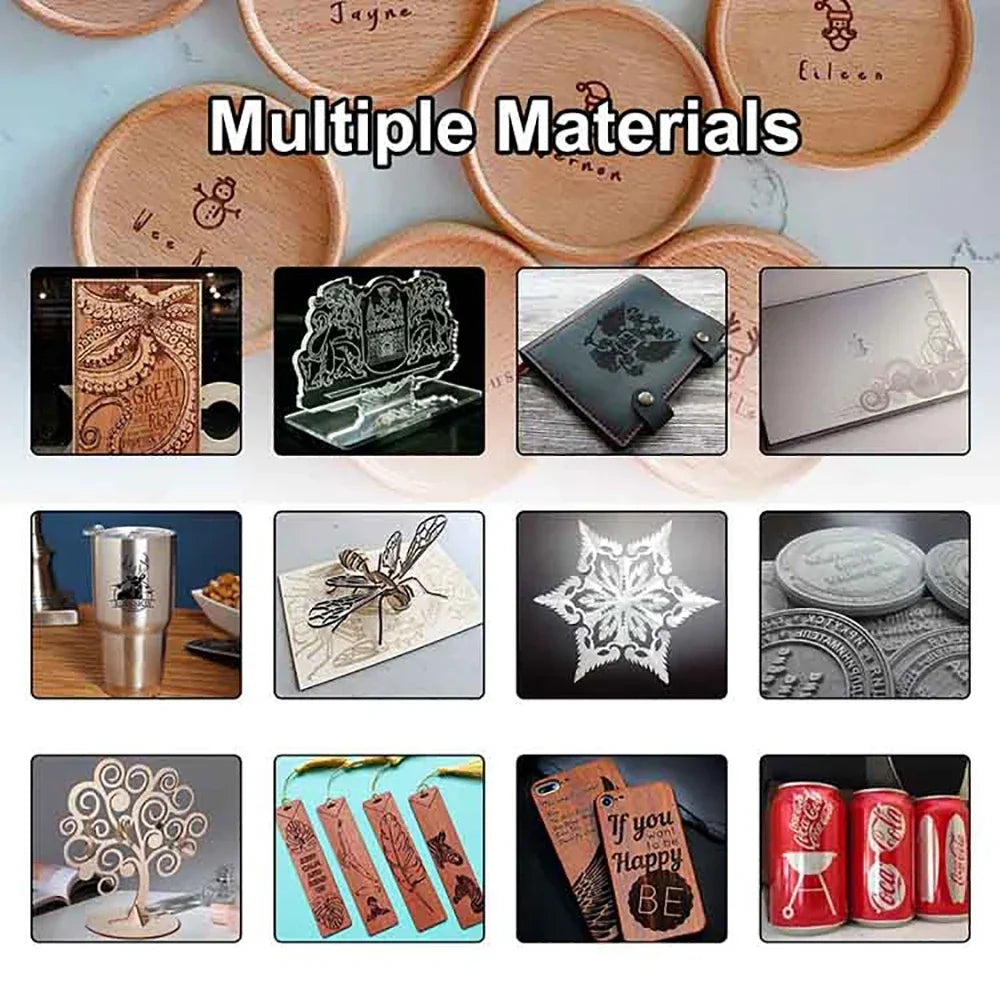 Can engrave: wood, leather, paper, acrylic, plywood and so on.