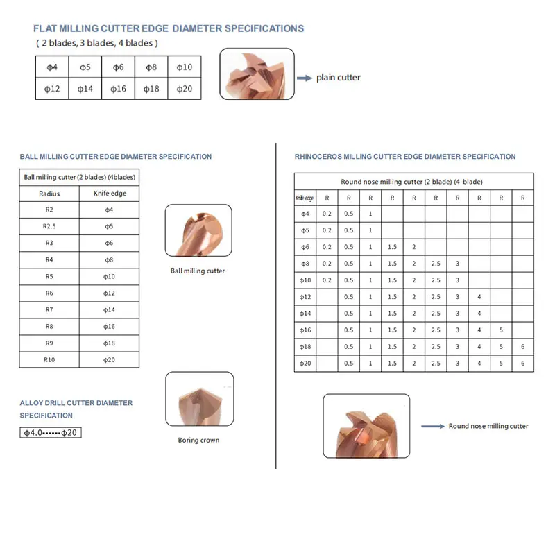 Grinding tool model: flat bottom milling cutter, ball milling cutter, round nose milling