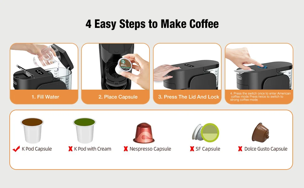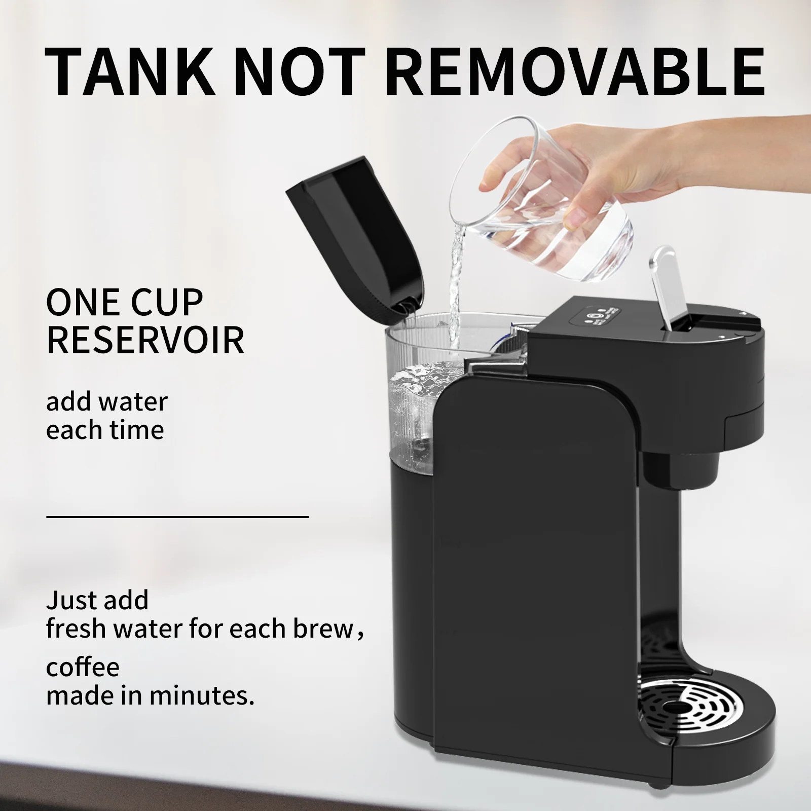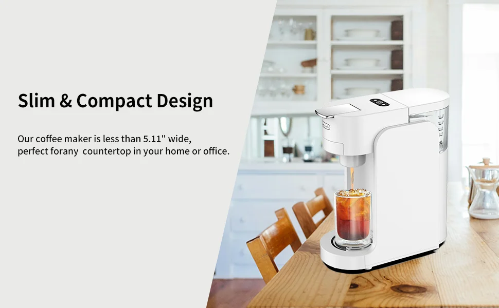6. Single-cup brewing: Dispenses exactly the amount of coffee corresponding to the water level in the tank