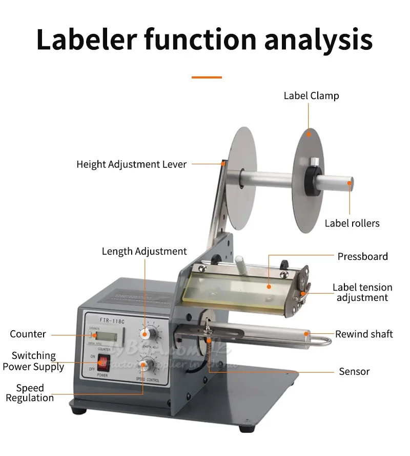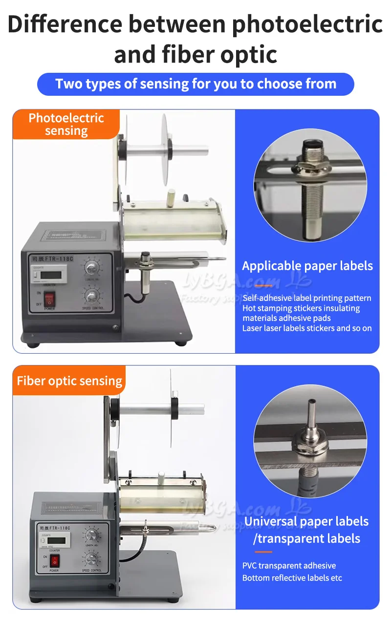 Fiber Induction Sticker Label Stripping Dispensing Machine FTR-118C 120-320MM With Counting Function Labeling Peeling Photoelectric Device Wide Customized