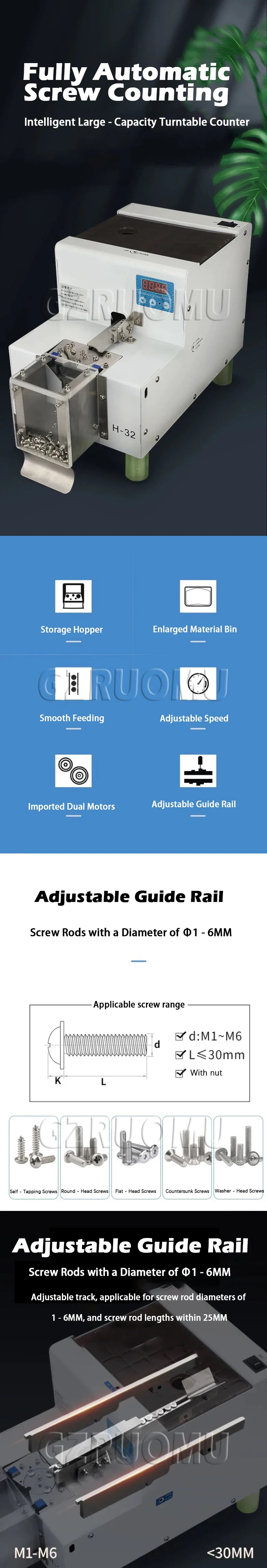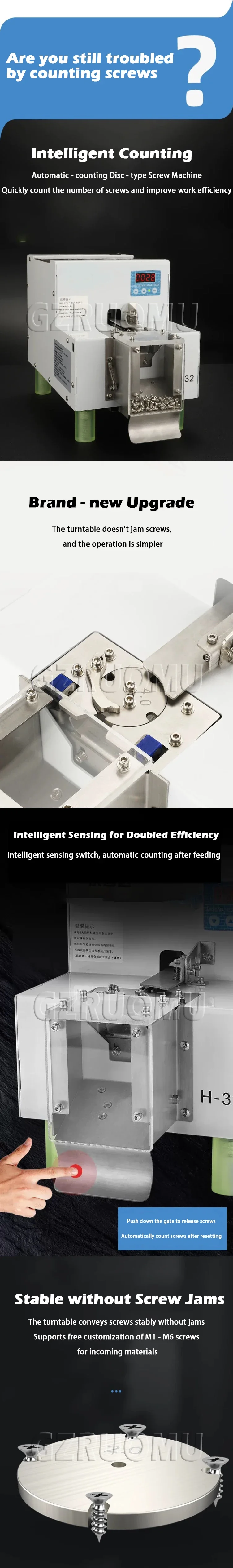 The product is a turntable screw counting machine, large capacity, turntable does not jam screws, simple operation, intelligent induction switch, improve work efficiency..
