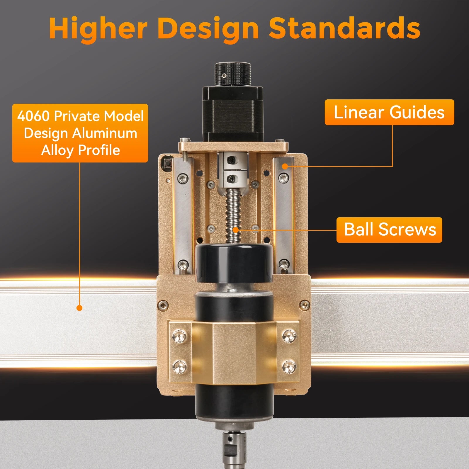 High-Precision Z-Axis Upgrade: Features dual linear guides and ball screw design, enhancing stability and machining accuracy. Perfect for precision-demanding CNC woodworking and metalworking tasks
