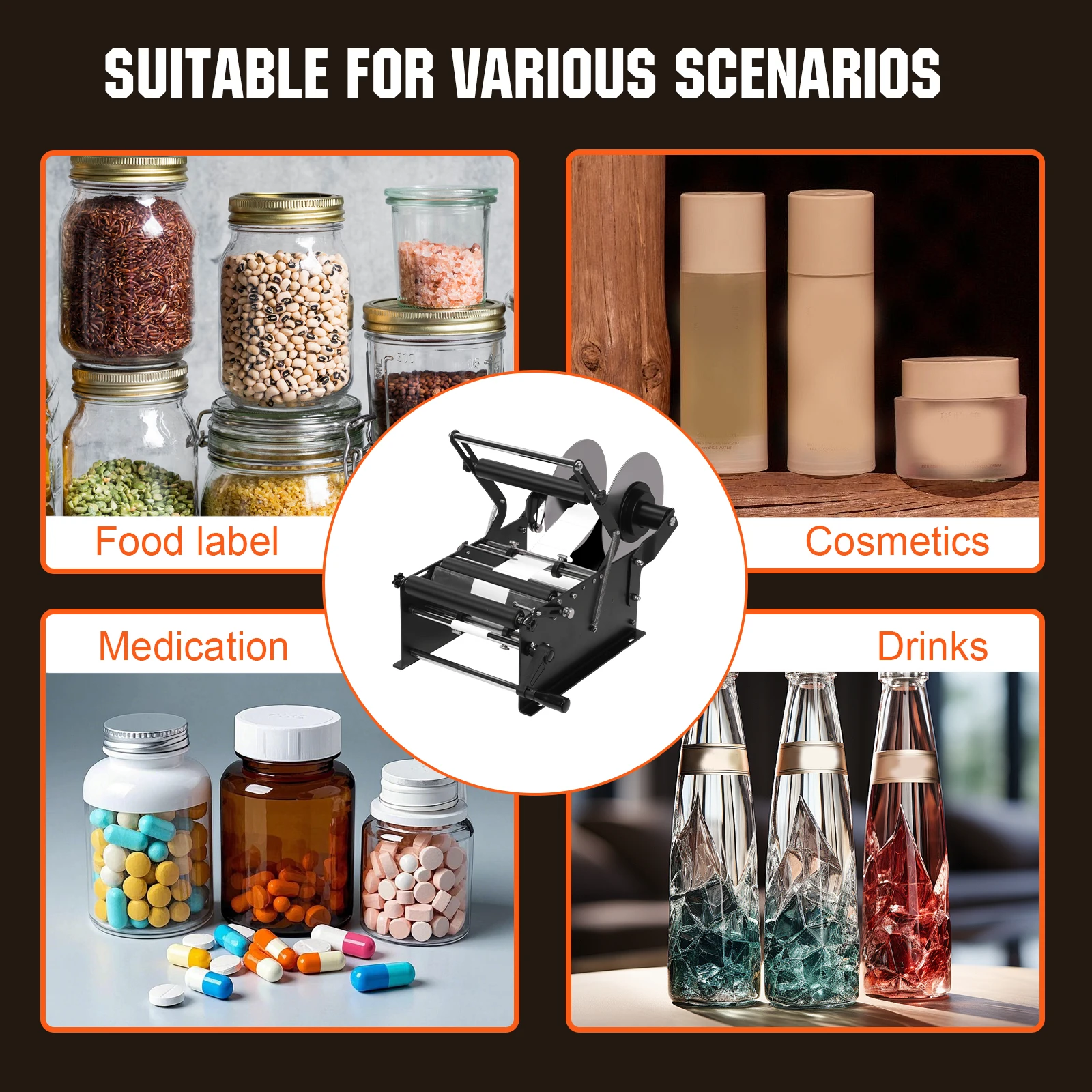 Features: 1.Upgraded Wider Design: The ZP-50W is an enhanced version of the ZP-50, increasing label width range for larger bottles and wider labels. Ideal for small production runs, this wine bottle sticker label applicator increases versatility and productivity. 2.Versatile Specifications: With label widths from 0.39 to 6.29 inches, lengths up to 11.81 inches, and suitable for bottle diameters 15-120mm and heights below 340mm, the manual round bottle labeling machine adapts to various containers and projects. 3.Practical Advantages: Adjustable fixtures accommodate different bottle sizes quickly. This manual labeling machine requires no power connection, promoting energy savings, and is ideal for applying transparent labels efficiently. 4.Compact Desktop Build: Its compact, modular structure saves space and offers sturdy performance. Maintenance is easy, reducing repair costs, making this bottle label applicator a reliable choice for any workspace. 5.Wide Application Range: Designed for round PET, plastic, glass, or metal bottles such as wine, beer, beverages, and water, this small label applicator machine is ideal for food, beverage, cosmetics, and pharmaceutical industries. Specification: Product size: 530.00x320.00x310.00mm Product size: 20.87x12.6x12.2inch Origin (country or region): Mainland China (Origin) Material: Iron