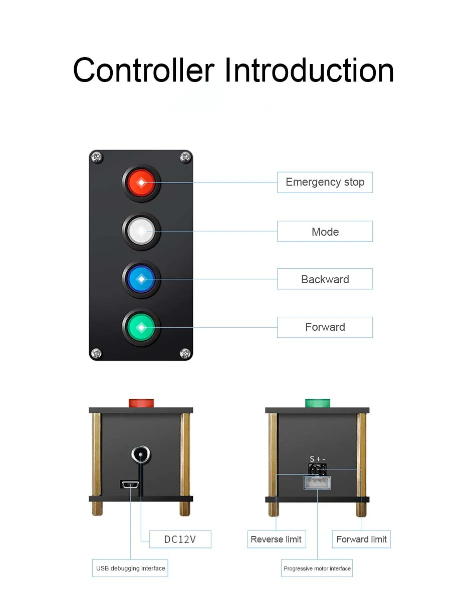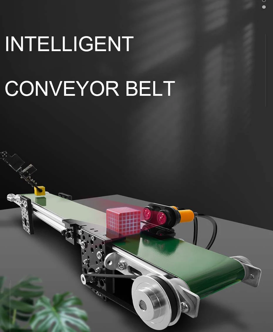The conveyor belt is supported by an aluminum alloy structure, controlled by a 42 step motor, and equipped with a high-sensitivity infrared sensor to simulate industrial assembly line control; It can control the forward and reverse rotation of the conveyor belt, and the speed can be adjusted.