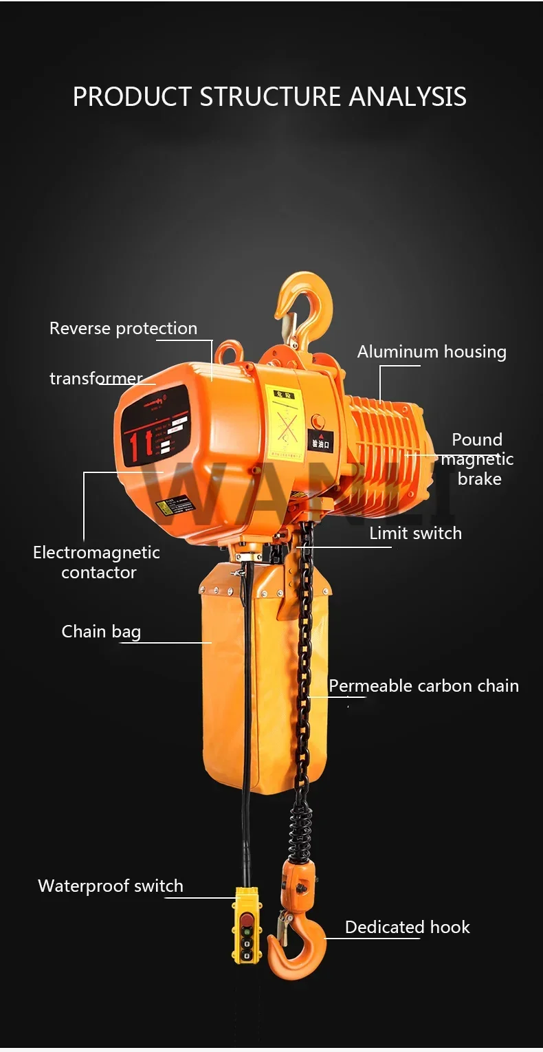 Industrial Lifting Hoist Ring Chain Hoist 220V/1100W/1500W Portable Overhead Chain Electric Fixed Single Chain Crane