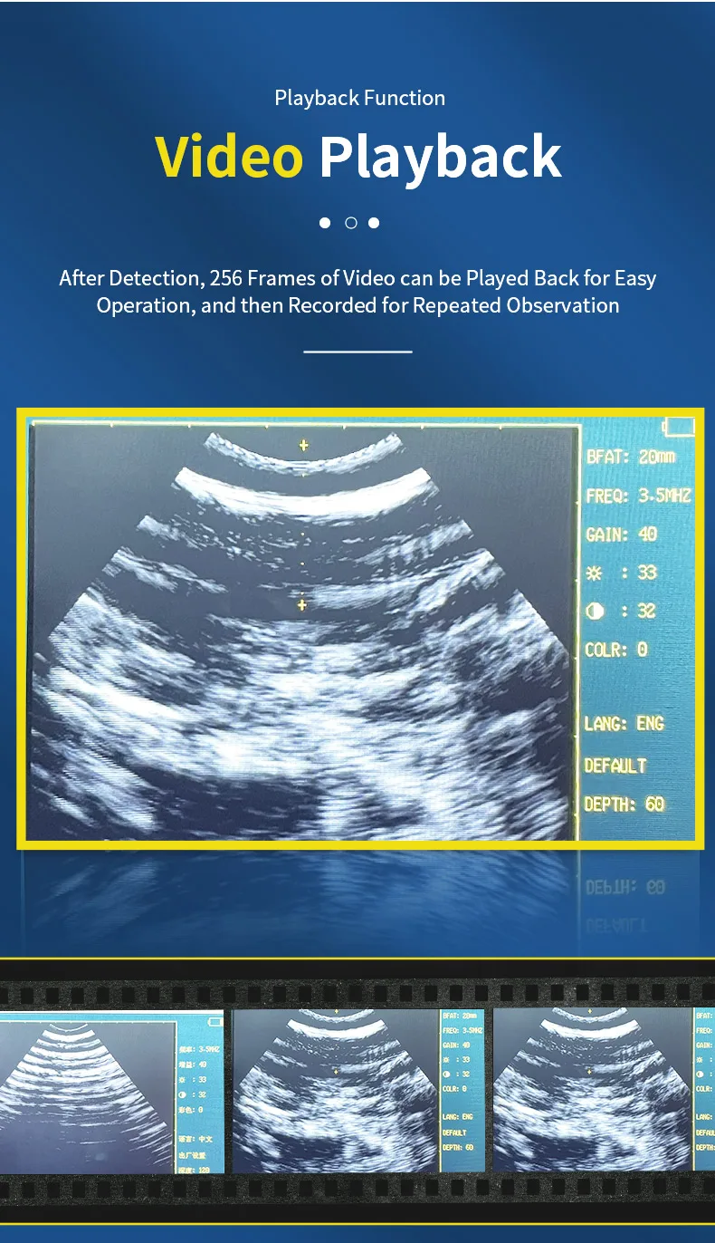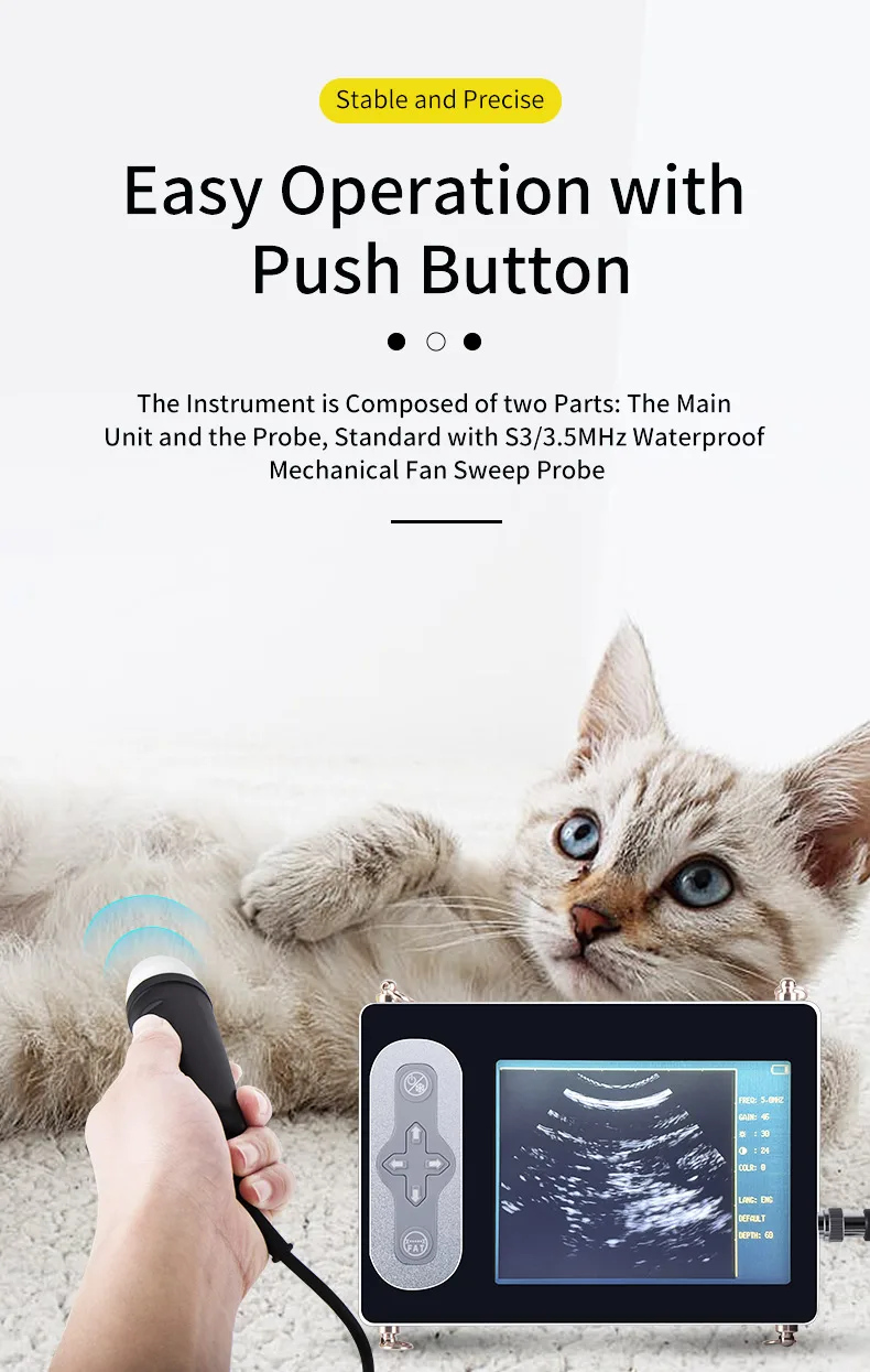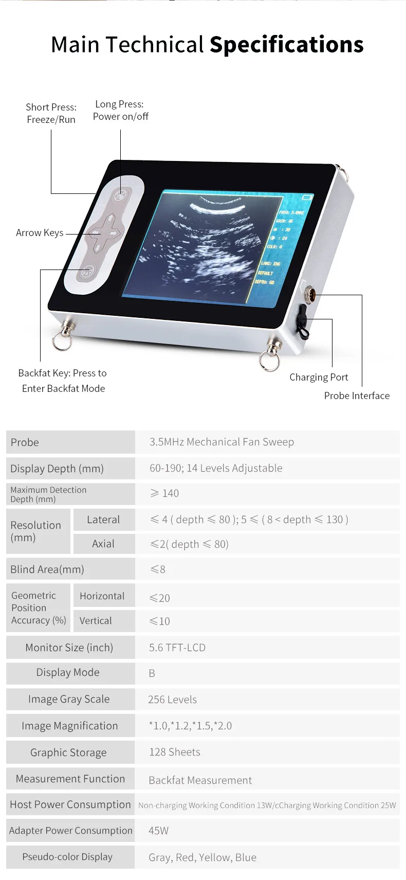 ●The instrument consists of two parts: the main unit and the probe. The S3/3.5MHz waterproof mechanical fan sweep probe is fitted as standard.