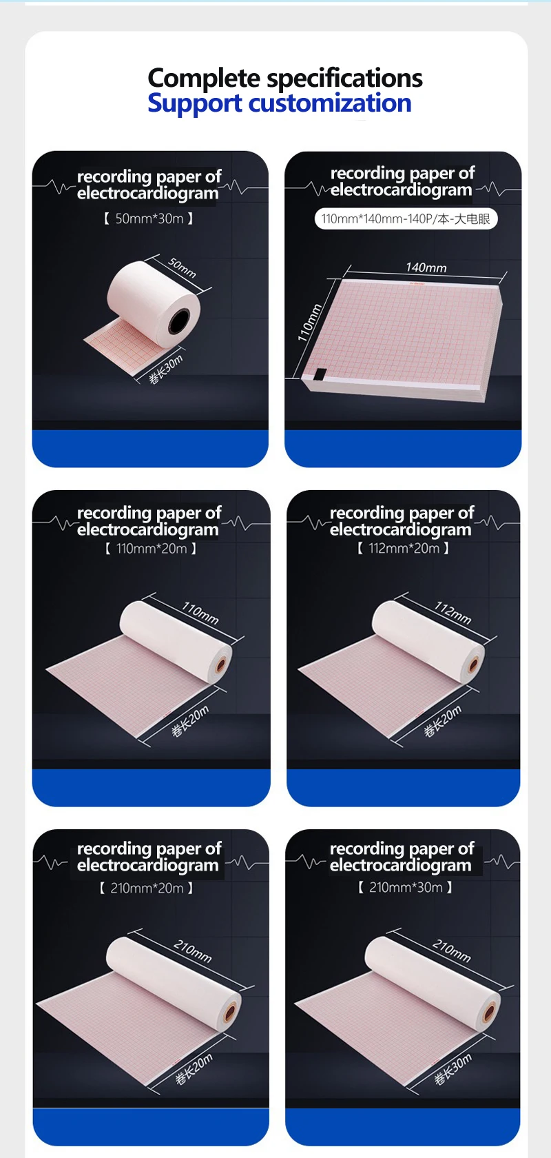 ECG EKG Machine 50mm*20m/80mm*20/110mm*20m /210mm Electrocardiograph Thermal Printer Paper