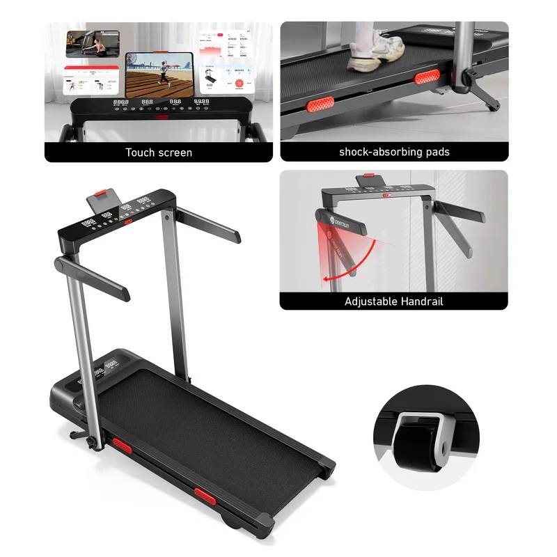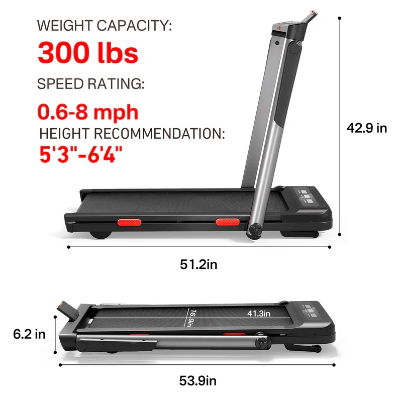 The treadmill is equipped with a powerful 2237W engine with a noise level below 45dB, ensuring a comfortable and quiet exercise experience. Our treadmill has a width of 105cm * 43cm and a load-bearing capacity of 136kg, meeting the exercise needs of most people