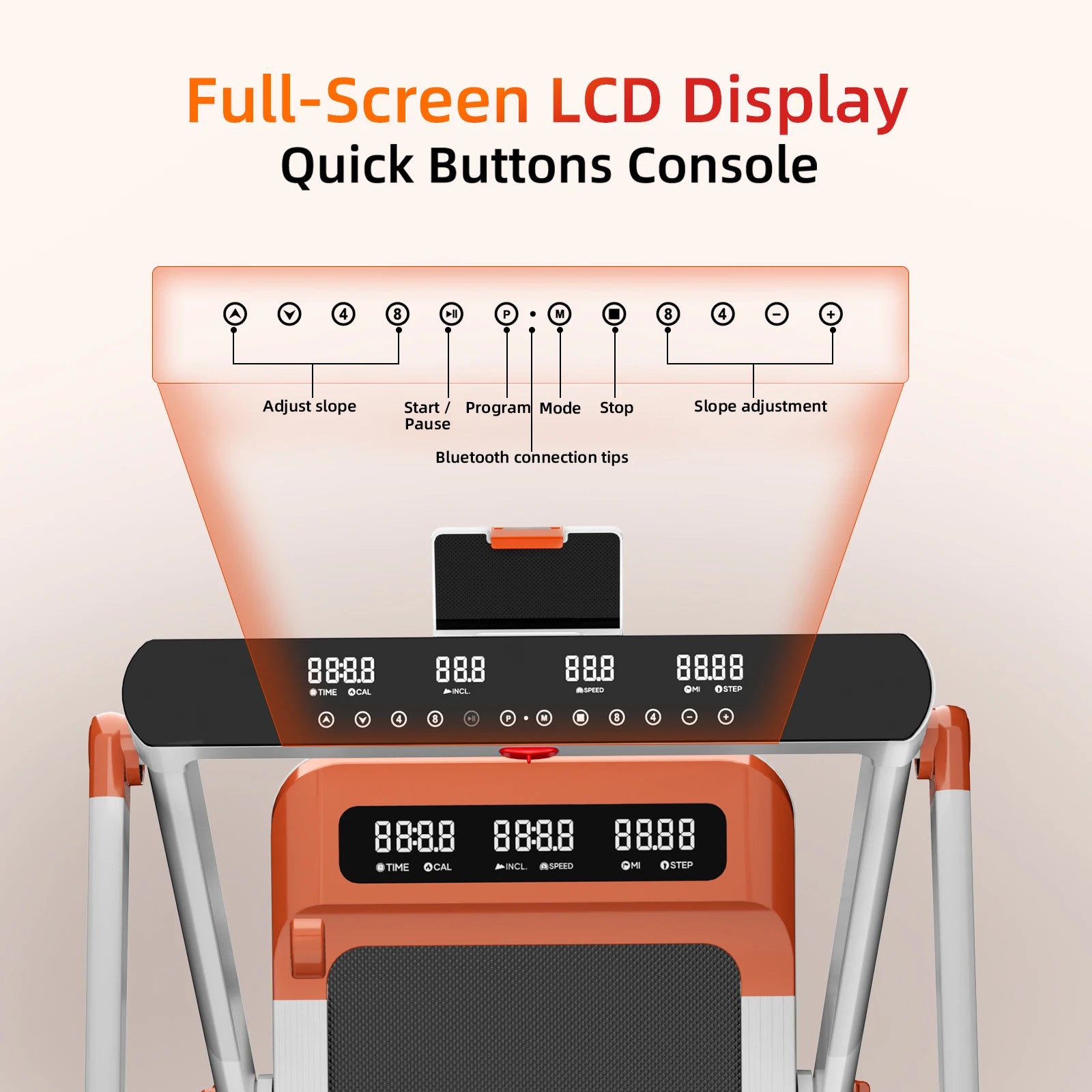 Can be used as a treadmill or walking machine, no assembly required, easy to fold. 9% adjustable tilt angle up to, speed can be easily adjusted to 13 kilometers per hour, can be modified according to sports needs