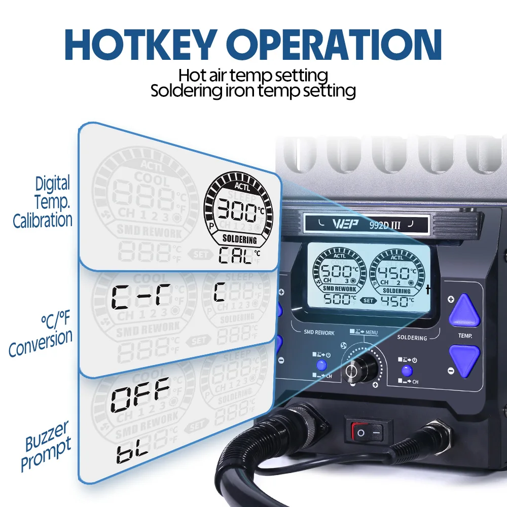 WEP 992D-III Soldering Station With C245 Soldering Iron 1220W Hot / Cool Air Gun