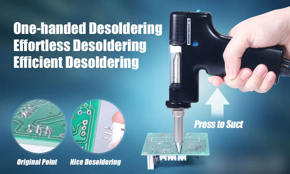 1. Before desoldering: you need to turn the machine on, and the tin gun handle heats up to dissolve the tin of tip and then can suck to desolder
