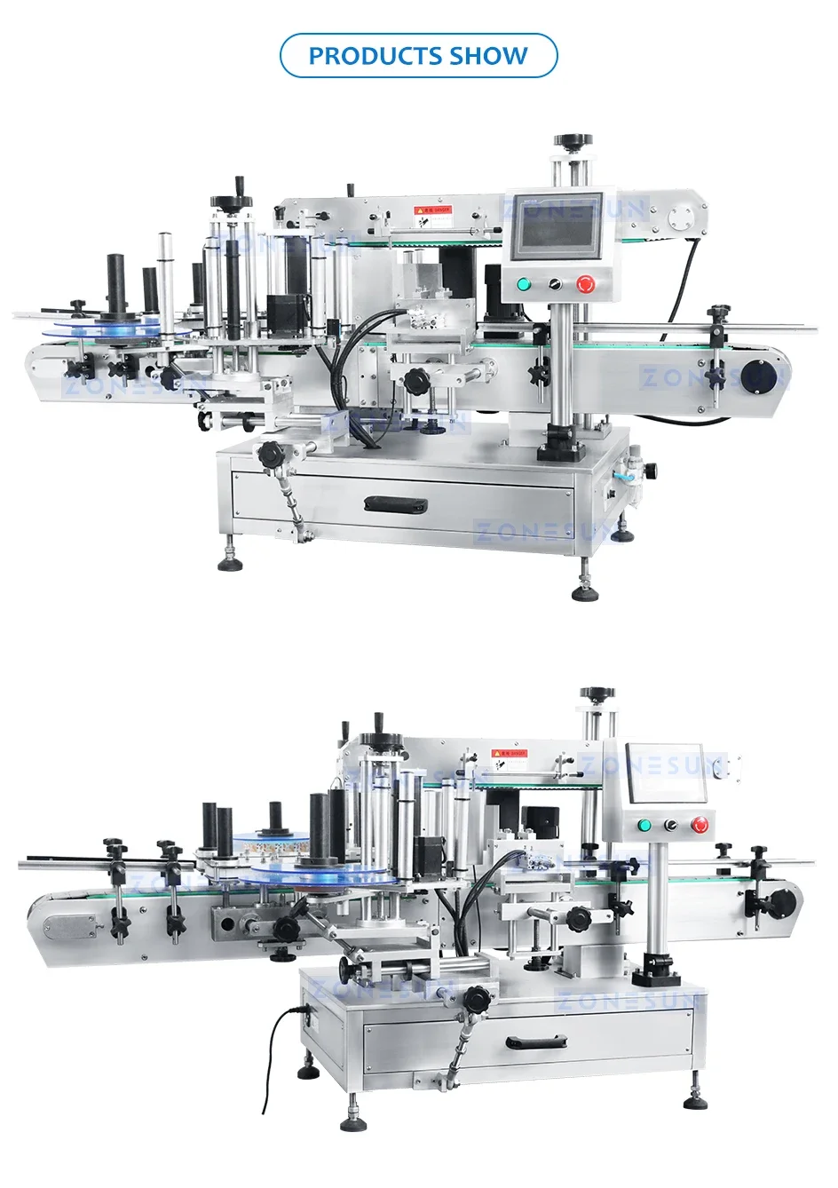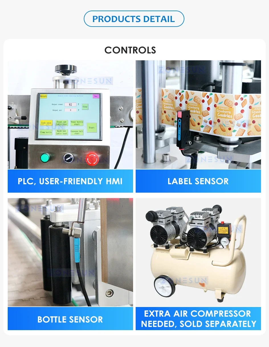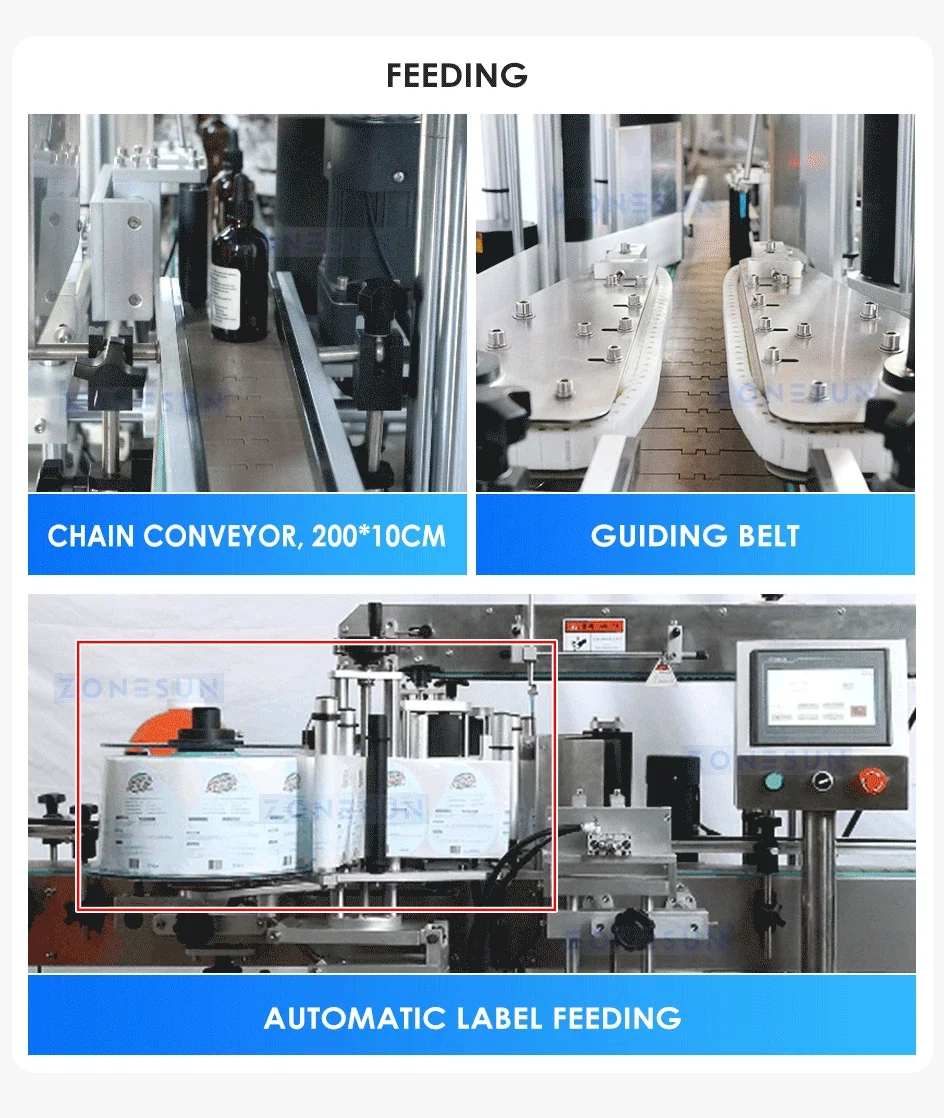 This is an automatic tabletop labeling machine. It is applicable to both flat and round bottles. Also, it can apply one or two label on the containers. Compared with others, it is small in size, so it is easier to move it and make it fit for any space.