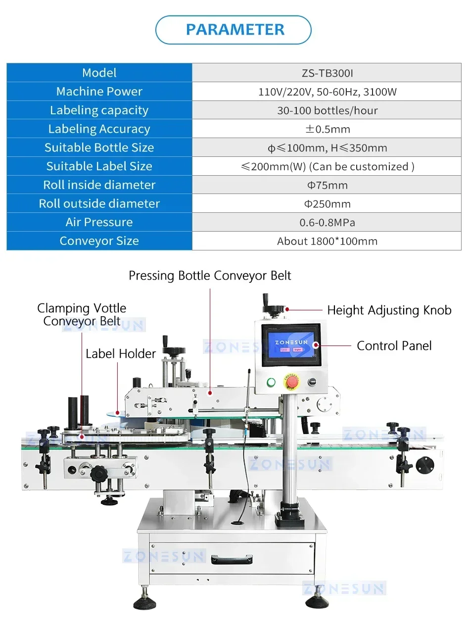ZONESUN ZS-TB300I Vertical Single Side Glue Bottle Labeling Machine for Flat Surface Packaging